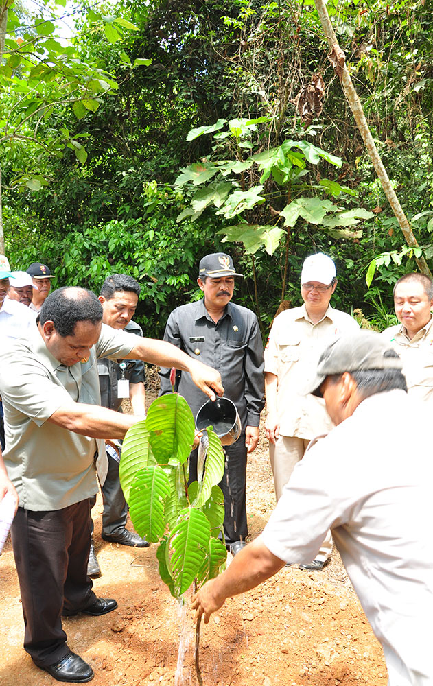 Penanaman pohon Tengkawang oleh Menteri Lingkungan Hidup RI, Prof. Dr. Balthasar Kambuaya, MBA di area konservasi PT. CUS, 11 Apr 2014