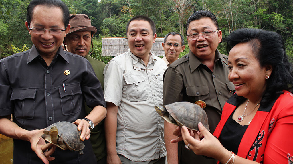 Bpk. Cornelis dan Ibu melepaskan kura-kura ke danau konservasi PT. CUS - 04 Sept, 2014 Kayong Utara, Kalimantan Barat