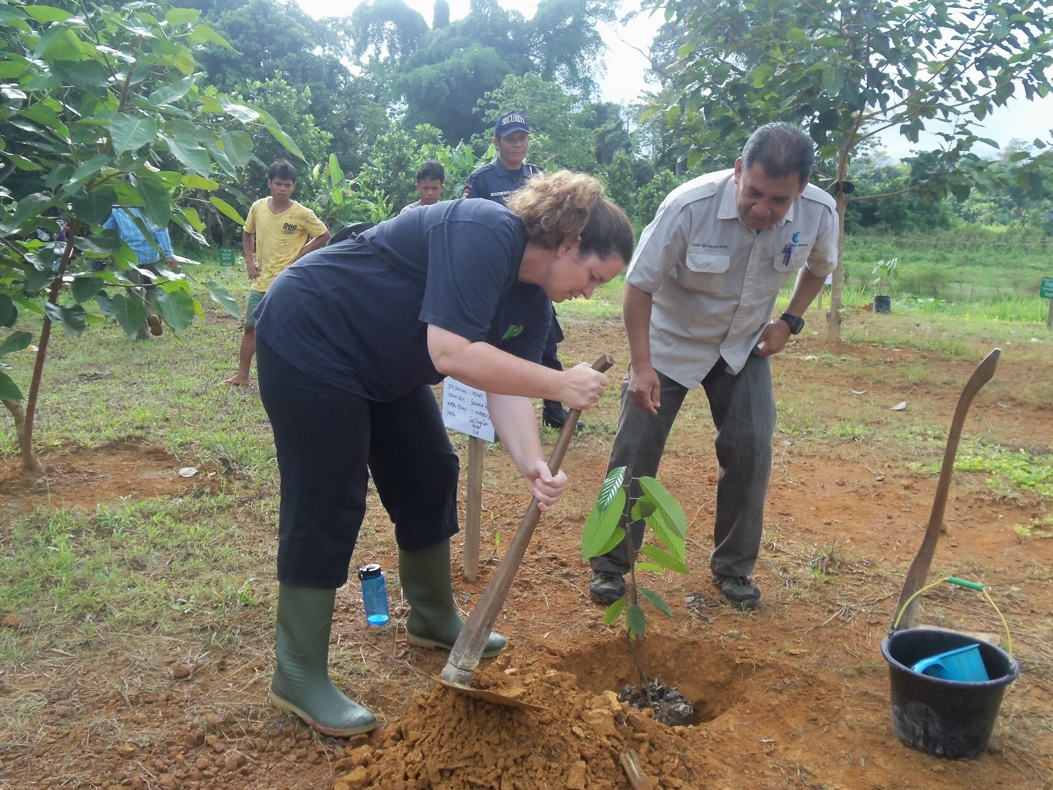 Penanaman pohon Tengkawang oleh Mrs. Suzane Hall, San Diego Zoo, di area kebun PT.CUS, 11 Sept, 2014